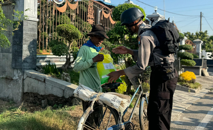 Di sepanjang rute, mereka menyapa warga dan membagikan bantuan sosial berupa beras kepada masyarakat yang membutuhkan. Senyum tulus dan sapa warga menjadi penyemangat bagi para siswa.