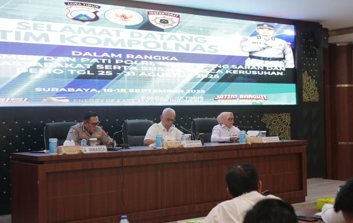 SURABAYA – JATIM || jatim.journalistpolice.com – Komisi Kepolisian Nasional (Kompolnas) melakukan monitoring di Polda Jawa Timur, Selasa (16/9/2025).
